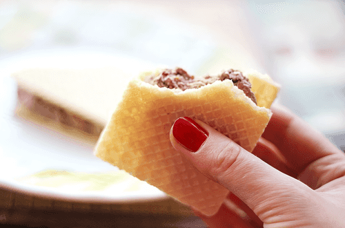 15 minutes before serving, take the mold out of the freezer. Then, use an ice cream scoop to place small balls on the waffle and gently press another on top.
