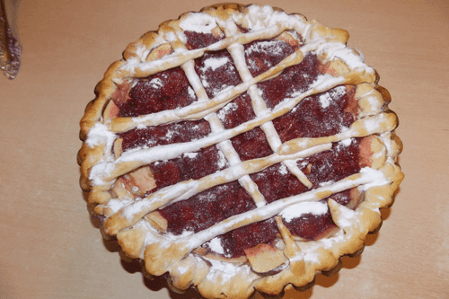 Strawberry pie with apple is the embodiment of tenderness and fruity richness in one dessert. This recipe originates from traditional European cuisine, where juicy fruits have always found their place in baking. The yeast dough makes the pie airy, while the combination of apples and strawberry jam gives it an amazing balance of sweet and sour flavor. Crispy strips of dough on the surface give the pie an elegant look, and butter with powdered sugar is the finishing touch that turns it into a true work of art. This pie is perfect for cozy home evenings, tea parties with loved ones, or festive treats. It will bring you warmth and enjoyment in every bite!