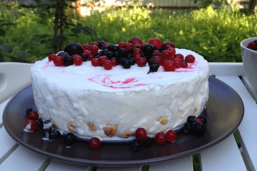 Place the cake in the freezer 3-4 hours before the ceremonial serving. Condiments are at the birthday person's discretion.