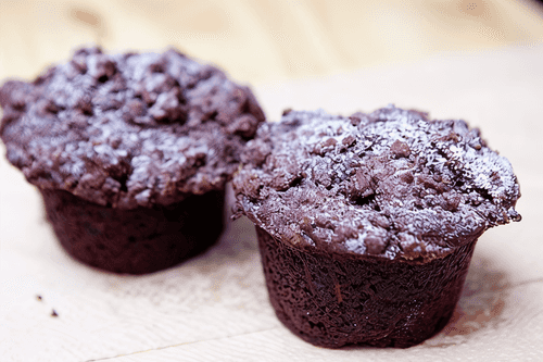 Heat the butter in a saucepan, stirring constantly, until it turns brown. Add to the mixture. Add blueberries. Pour into molds. Bake for 15-20 minutes. Dust with powdered sugar.