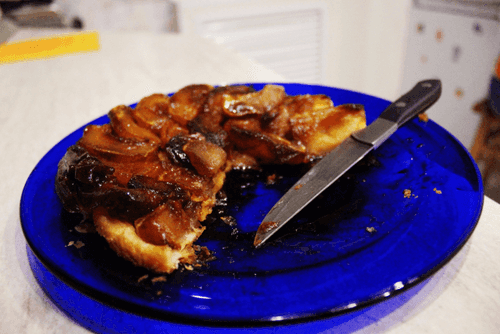 The finished pie should cool slightly. Drain the excess caramel and return it to the heat. Flip the pie sharply. Bring the caramel to a liquid state and pour it over the pie.