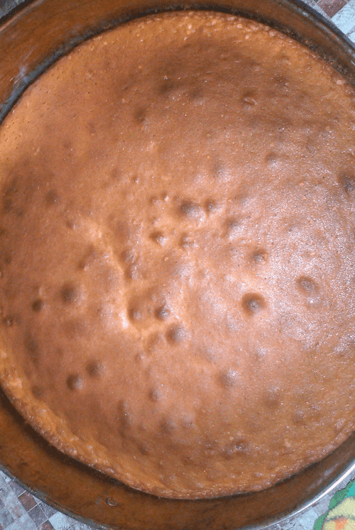 Take 3 eggs and 250 g of sugar, beat them, add 100 g of sour cream, baking soda, and 250 g of flour, mix everything and bake in a pre-greased form with vegetable oil. This will take you about 20 minutes.