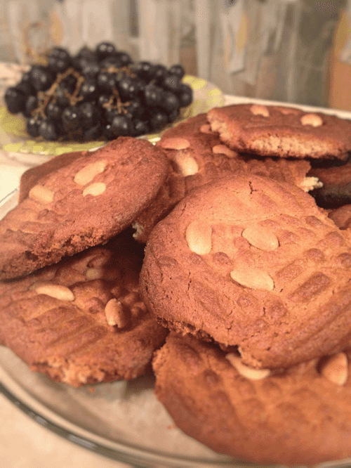 Form small balls by measuring the required amount of dough with a tablespoon and place them on a baking sheet lined with parchment paper. Use a fork to create a lattice pattern on top of the cookies. Bake until golden for about twelve minutes.
