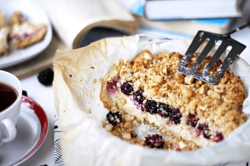 Take the dough out of the freezer and mix it with chopped hazelnuts. Sprinkle the resulting mixture over the blackberries. Cover the dish with foil and place it in an oven preheated to 180 degrees for forty minutes. Remove the foil and bake for another ten minutes.