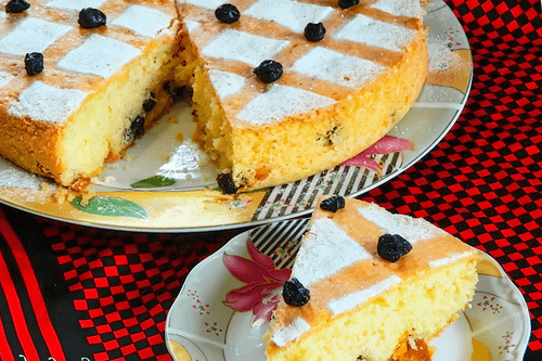Blackcurrant pie with mango chunks is a blend of lightness and vibrant flavors. The brown-golden crust hides a tender, aromatic filling enriched with the sweet-sour notes of blackcurrant and exotic mango. This pie represents a modern interpretation of European baking, where classic techniques merge with unusual fruit additions. Its taste is a harmony of rich sweetness with a light tartness, making it an excellent choice for both family tea time and festive treats. Dried berries add texture and depth, while powdered sugar gives it an elegant appearance. This dessert pairs perfectly with vanilla ice cream or fresh berries, creating a true culinary masterpiece.