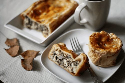 Mushrooms are chicken's best friends, especially if their mixture is surrounded by a thin shell of puff pastry. The recipe calls for champignons - feel free to replace them with whatever you bring from the forest.
