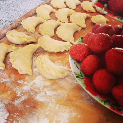 Dumplings with strawberries