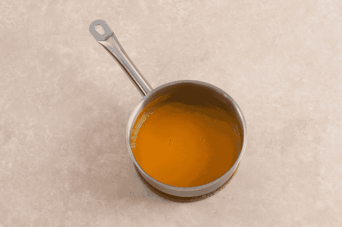 Transfer the mango puree to a saucepan, add sugar, bring to a boil, remove from heat, and stir in gelatin continuously with a whisk.