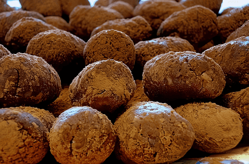 At the very end, add rum essence. Roll the pastries and coat them in the remaining crumbs or cocoa. Place in the refrigerator for a few hours.