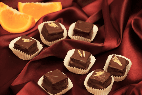 Orange candies are a refined treat infused with the aroma of citrus and the exquisite sweetness of chocolate. Their history roots back to European traditions where marzipan and fruit jams are an essential part of confectionery art. Delicate almond marzipan soaked in cognac creates a rich texture, while the truffle layer adds a deep, intense flavor. The combination of orange marmalade with cloves fills each candy with warm spicy notes. These candies are perfect for festive treats or elegant gifts, impressing with their complexity in preparation and layered flavors. Their soft consistency melts smoothly in the mouth, leaving a pleasant aftertaste with a hint of citrus tartness. Enjoy this wonderful dessert, embodying true European confectionery craftsmanship.