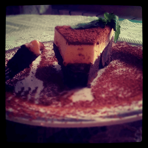 Truffle cake with white chocolate mousse is an exquisite dessert embodying the harmony of rich chocolate flavor and delicate airy mousse. The layers are made from dark chocolate, cocoa, and coffee, creating a deep aroma with light coffee notes. The white chocolate mousse gives the cake a silky texture and a gentle sweet aftertaste. This dessert is inspired by European pastry traditions that combine sophistication and richness of flavor. It is perfect for festive occasions and romantic evenings when one wants to indulge in true gastronomic luxury. Served chilled, often decorated with cocoa powder that highlights its velvety texture. Each piece is a smooth dive into the world of sweet pleasure where each ingredient plays its role in creating an unforgettable symphony of taste.