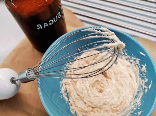 In a separate bowl, mix softened butter and sugar with a mixer.