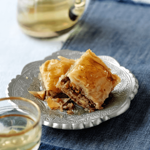 Baklava with honey-rose syrup