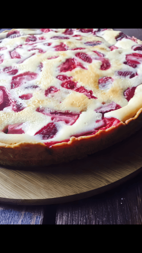 Strawberry and sour cream pie is a delicate treat from Russian cuisine, captivating with the combination of fresh berries and creamy tartness. Its origins can be found in traditional village recipes where natural ingredients come together in harmonious flavor. The crumbly dough made with butter complements the juicy pieces of strawberry, while the sour cream filling with vanilla adds softness and an airy structure to the pie. Perfect with a cup of tea or coffee, this dessert delights at any time of year, especially in summer when strawberries are most fragrant. The pie can be served warm or chilled and garnished with mint leaves or powdered sugar for added elegance.
