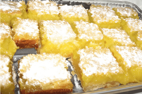Cut into cubes/rectangles. Before serving, sprinkle with powdered sugar.