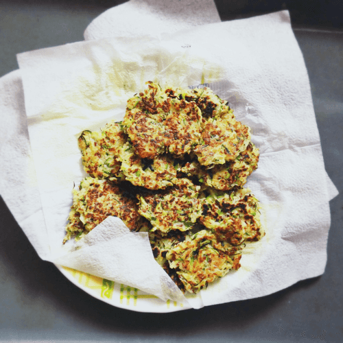 Quickly mix the zucchini mixture and flour, then fry in portions in heated oil until crispy.