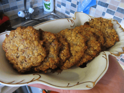 Traditional oatmeal cookies with raisins and peanuts embody cozy British baking, combining sweetness, richness, and a crunchy texture. Oats give it a pleasant graininess, while raisins and roasted peanuts add soft sweetness and nutty flavor. This recipe dates back to the Victorian era when oatmeal cookies were a staple of home cooking and accompanied tea time. The baking has a subtle aroma of butter complemented by light caramel notes of sugar. It is perfect for morning coffee or evening tea, offering the comfort and warmth of each bite. Due to its nutritional value and simplicity of preparation, oatmeal cookies remain a popular treat available for both family evenings and festive gatherings.