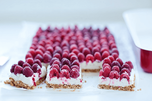 Carefully mix mascarpone with gelatin. Spread the mixture over a layer of cookies, top with raspberries, and leave in the refrigerator for 2-3 hours.