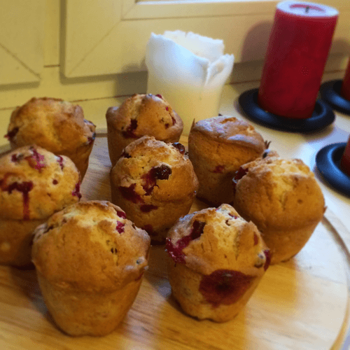Vanilla muffins with cranberry made from milk are a refined treat of French cuisine, combining the tenderness and lightness of the dough with the refreshing tartness of cranberries. Their history goes back centuries when French pastry chefs aimed to create an exquisite delicacy for tea or coffee. The buttery dough infused with vanilla aroma offers softness and airiness, while the berries add an elegant contrasting flavor. Serving them warm or slightly chilled allows you to enjoy their melting effect. Perfect for cozy breakfasts, festive gatherings, or simply moments of indulgence. Enhance them with a light dusting of powdered sugar or cream for even greater sophistication.