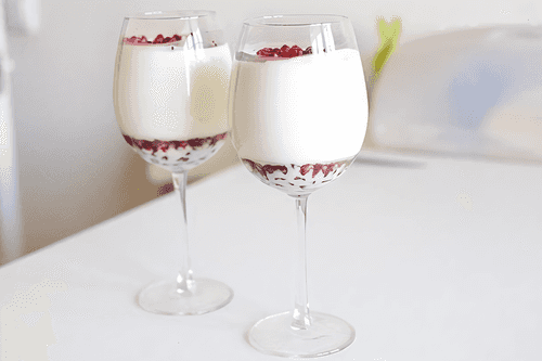 Layer pomegranate seeds at the bottom of the jelly mold (it looks nice if you use a transparent mold, like glasses), pour the jelly mixture over it. Place in the refrigerator to set for 2 hours. Then add more pomegranates to distribute them in the jelly. Put it back in the refrigerator (preferably overnight).