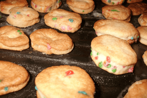 Roll out the dough and use a cookie cutter to make shapes (I used a glass to make regular circles).