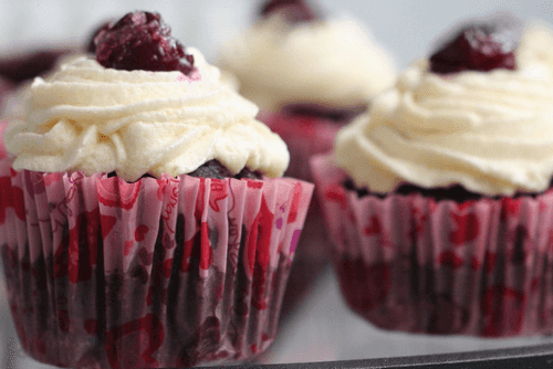 Chocolate cupcakes with curd cream and cherries