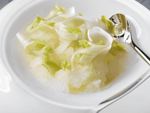 Lemon parfait with champagne granita and celery