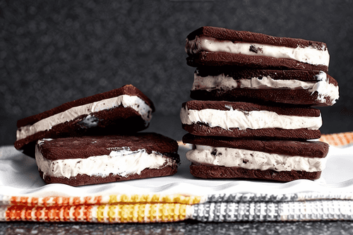 The classic ice cream sandwich is a true embodiment of childhood summer joys and nostalgia for old American cinema. Emerging in the early 20th century, it quickly won the hearts of sweet lovers with its combination of airy ice cream and tender chocolate cookies. Its taste is exquisite and contrasting—crunchy cocoa biscuits perfectly complement the creamy ice cream, creating a harmony of textures and aromas. These sandwiches are convenient for serving at parties, picnics, or simply on a hot day when you want to refresh yourself. Wrapped in film, they maintain their shape and are easy to store in the freezer. One bite—and you are enveloped by a wave of cool sweetness that transports you to a carefree summer outdoors.