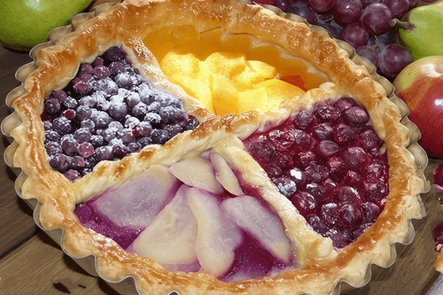 Puff pastry pie with berries and fruits