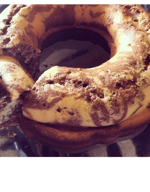 Pour the batter into a buttered pan alternately: dark - light, dark - light, without mixing.