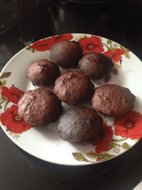 Bake in a preheated oven at 200 degrees. Baking time depends on the desired result: 8-9 minutes for a moist center, 6-7 minutes for liquid chocolate inside.