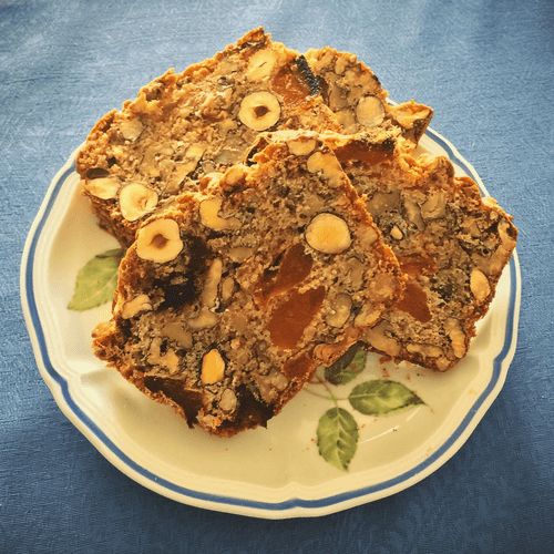 Vanilla cake with dried fruits and nuts