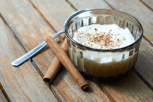 Then add the remaining milk, sugar, salt, throw in the butter, and remove from heat. Divide into bowls and sprinkle with cinnamon before serving.