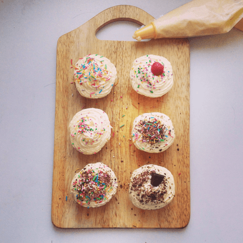 Decorate the cupcakes with cream and any topping of your choice and taste.