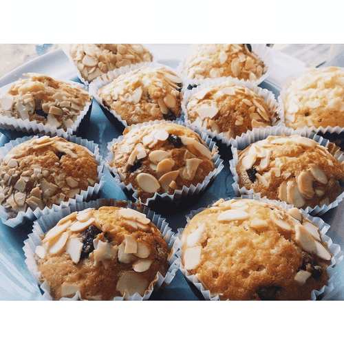 Muffins with chocolate and almond petals