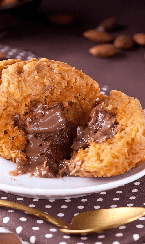 Scoop the dough into the mold by tablespoon (approximately), place a piece of your favorite chocolate, and cover with another spoonful of dough.