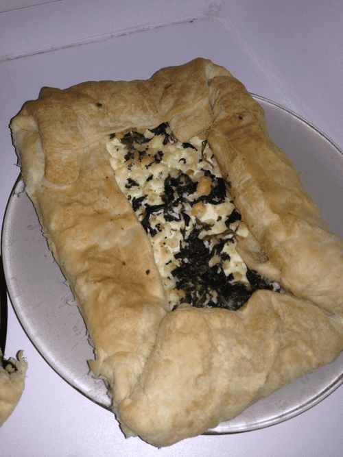 Puff pastry pie with spinach and feta cheese