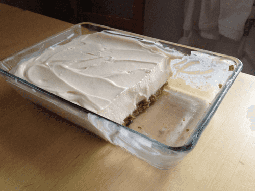 Pour the resulting homogeneous mixture over the baked 'bottom' and place it in the refrigerator for a few hours.
