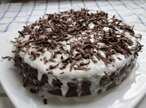 It's better to put the cake in the fridge for 2 hours so it soaks well and becomes tender.