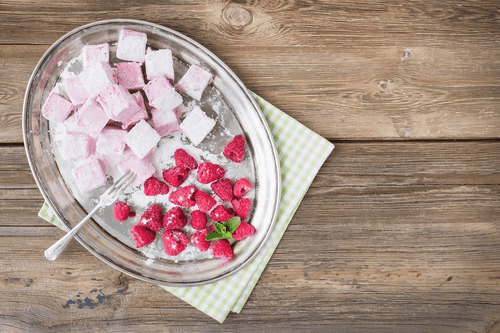 Sprinkle powdered sugar on top, carefully remove from the mold and flip to the other side, sprinkling with sugar again. Cut into small cubes or sticks, and if desired, you can roll them in powdered sugar again.