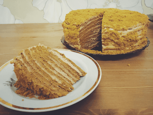 Medovik with custard is a true masterpiece of European cuisine, infused with the aroma of honey and the tenderness of cream. This cake has deep roots in Eastern European baking traditions, where honey layers symbolized festive gatherings. Its taste is a harmony of caramelized honey sweetness and creamy softness, creating a unique texture. It is perfect for cozy family tea times, formal events, or simply enjoying the moment. The honey layers soaked in cream become incredibly tender, and the light creamy flavor adds sophistication. Each slice of this cake is a small gastronomic story connecting past traditions with present-day taste pleasures.