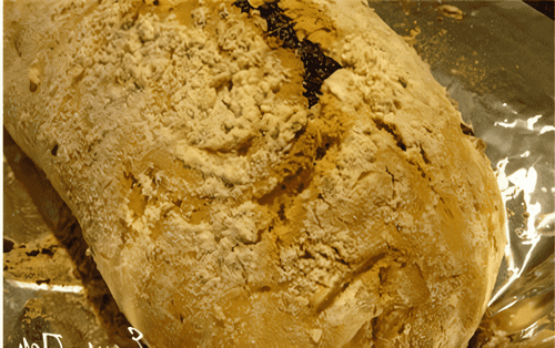 Filling: I took mashed black currants with sugar for the filling. I have a little sugar. Add 1 tablespoon of dry (not soaked!) gelatin to the currants and spread it on the dough. I spread it from one edge and the other and rolled it up like a stollen. First, one edge towards me, then the one closer to you - inside. Then one over the other. Gather it slightly with your hands from the long sides to make a long log.