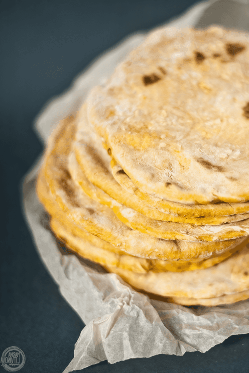 Bake on a dry heated pan without oil!!! A couple of minutes on each side. It's very tasty!