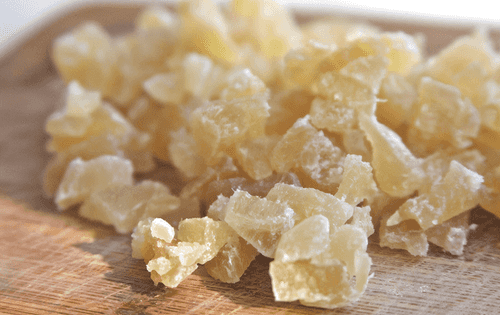 Drain the syrup while the ginger is still hot, and coat the slices in sugar. Then dry them on a rack.