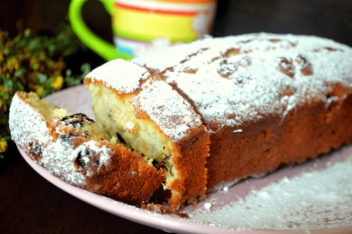 Lush curd cake with raisins