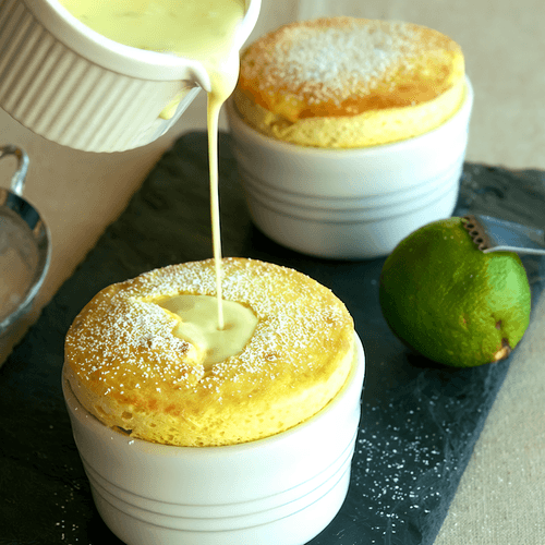 Mango soufflé under coconut-lime custard is a refined treat combining the airy lightness of French soufflé with exotic tropical freshness. Delicate mango puree enriched with rum and creamy aroma transforms into a fluffy cloud ready to envelop you in its softness. The coconut-lime custard adds a subtle tang and velvety texture, creating a perfect balance of flavors. This dessert embodies the art of European pastry school with a touch of exoticism. It is ideal for both festive evenings and cozy home treats. Serving hot soufflé with cold cream adds contrasting charm, making it a true gastronomic masterpiece.