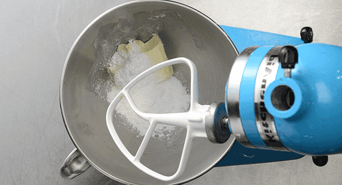 Mix room temperature butter with powdered sugar.
