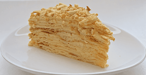 Eggless 'Napoleon' cake is a delicate treat with crispy layers and airy cream that melts in your mouth. It is an interpretation of the classic 'Napoleon', but without eggs, making it lighter and more accessible for those on specific diets. Its history traces back to French puff pastries, but in Russia, it has gained cult dessert status. The cream flavored with orange zest and vanilla adds a special sophistication, while the layers soaked in condensed milk create a perfect balance of sweetness and softness. This cake will be a magnificent decoration for the festive table and pleasantly surprise guests with its taste. It can be served with a cup of tea or coffee, enjoying every bite.