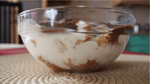 You can put it in a large bowl or distribute it in portioned cups, and it's better if the dish is transparent so that the layers are visible.