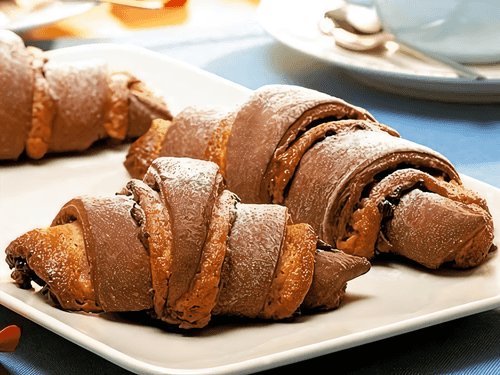 Chocolate horns cookies are a fragrant treat combining tender yeast dough and rich chocolate filling with spicy notes. This recipe is inspired by American culinary traditions that value baked goods with intense flavor. Sweet dough soaked in milk and butter gives the horns softness, while spices add an exquisite character. The cookie's feature is its appetizing layered structure and crispy crust created by brushing with egg yolk milk. An ideal option for a cozy tea time, especially on cool evenings when you want to warm up with the heat of chocolate and aromatic spices.